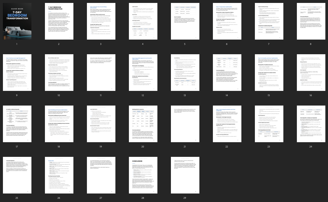 This guide helps your customers turn any bedroom into a calm, sleep-friendly space using small changes that make a big difference. It gives simple, step-by-step instructions for improving temperature, light, sound, and layout, making it easier to fall asleep and stay asleep every night.
