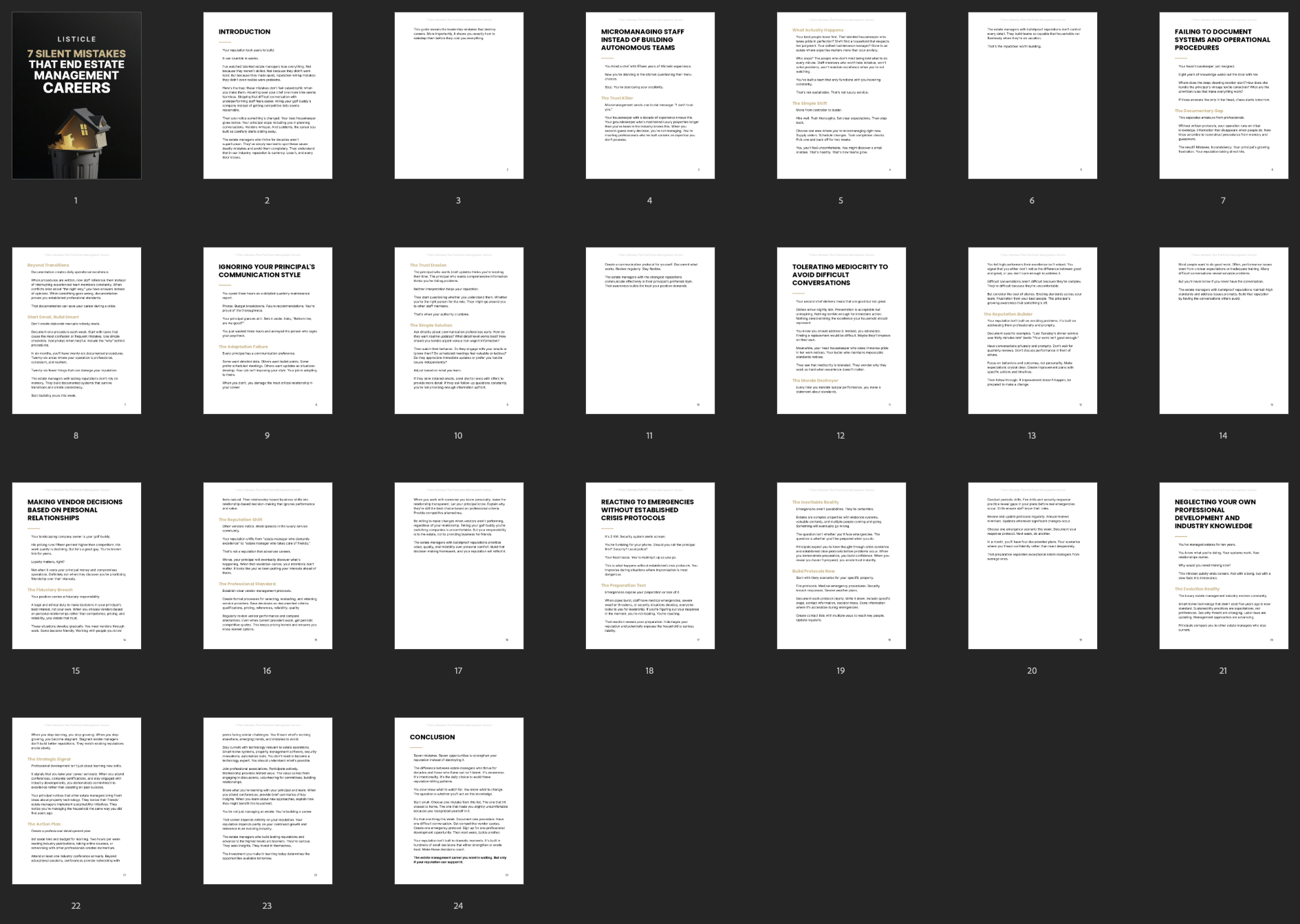 This listicle is a ready-to-use content asset designed to quickly educate, engage, and qualify your audience with clear, high-value insights about estate management careers. It’s perfect for resellers who want to offer a strong lead magnet that helps professionals spot career-killing mistakes before they cause serious damage. With a clear, story-driven style and practical lessons, it shows your customers how small habits can quietly ruin even the best careers.