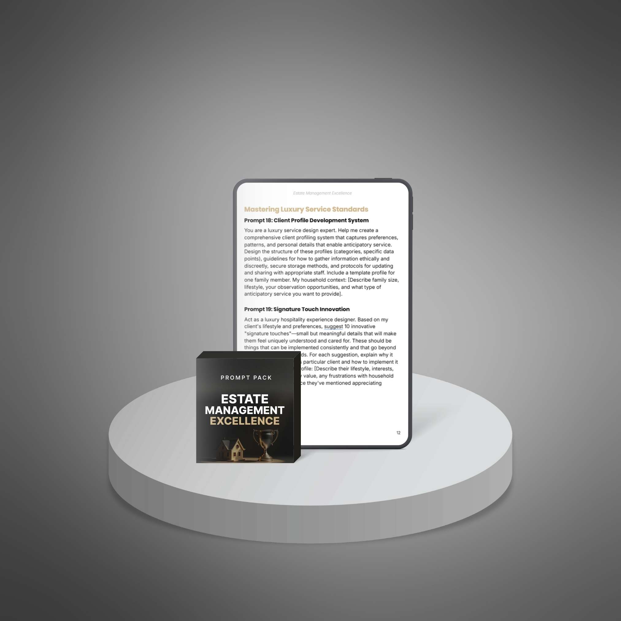 Offer your customers a powerful prompt pack that helps them manage estates with confidence and control. Whether they are new to estate work or already experienced, this pack gives them clear, useful prompts to run luxury homes the right way.