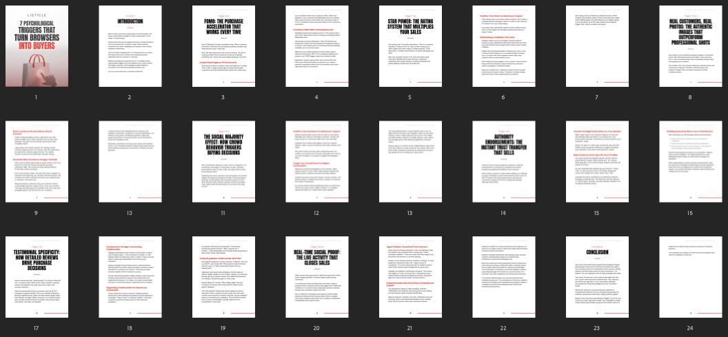 This listicle is a ready-to-use content asset designed to quickly teach, inspire, and convert your audience with simple, high-impact marketing psychology. It’s perfect for resellers who want to offer a lead magnet that helps business owners understand what really drives people to buy. With a clear message and 7 powerful triggers, it shows your customers how to turn more browsers into buyers using proven psychological principles.