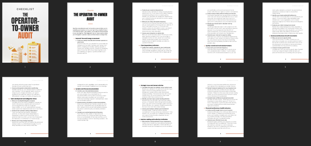 This checklist is an essential tool for your customers to review how they are running their business and spot where they are stuck doing too much themselves. It offers easy-to-follow steps that help them identify gaps in systems, delegation, and decision-making so they can improve how the business operates.